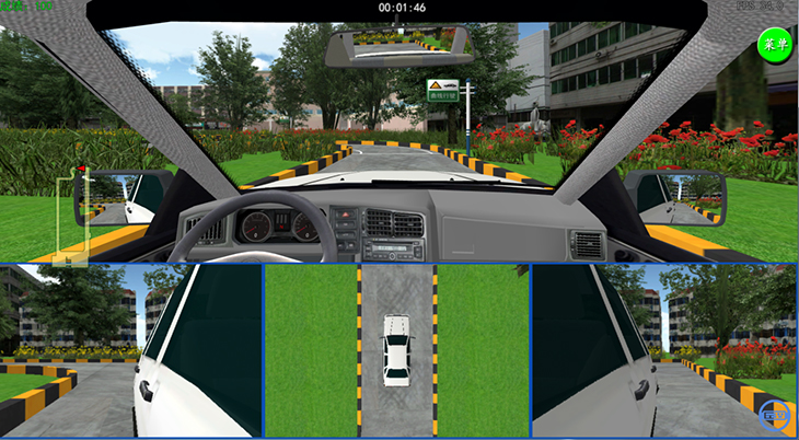 3)具有座舱和显示器的互动视景系统,并具有错误驾驶记录和提示功能。互动视景系统应具备图形工作站、显示设备、音响功放等组成,可实现驾驶员前景140度以上视角的屏幕显示。