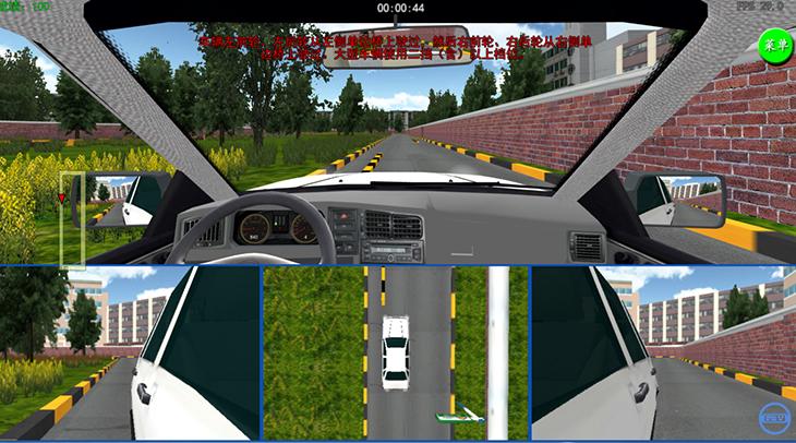 (3)雪天驾驶:突出冰雪路面的转向、制动与控制车速的操作方法,针对雪天驾驶容易发生汽车侧滑、甩尾情况指出操作要领,真实模拟雪花与玻璃的碰撞、视线的渐变、雨刮刮过的效果、车外后视镜的模糊等,重点是路面的选择、汽车的转向与制动等;