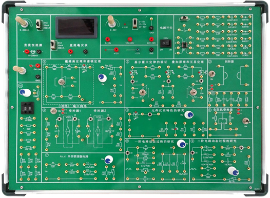 电路原理实验箱由铝木合金箱体、线性电源、常用信号源、测量仪表、实验电路模块等组成。其中实验电路区大部分元器件在反面,正面标有电路原理图,方便学生读图,以提高实验效率。本实验箱适用于本专科院校、高职高专所有电类和非电类专业《电工学》、《电路原路》等课程的实验教学。