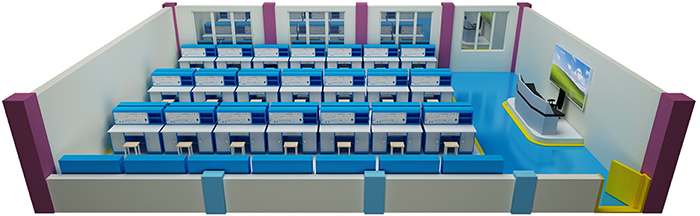 教师台在学生台的基础上增加电脑桌1张:钢质喷塑结构,预留电脑主机箱与显示器位置,配备电源总控装置及基于物联网实训室安全用电智能控制系统、智慧教室综合测控系统等: