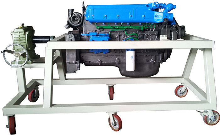 2.采用减速翻转机构,可使发动机任意角度旋转,并能任意位置锁止,便于学生从不同的角度进行拆卸和装配。