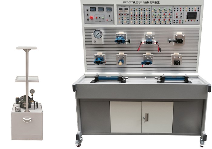 工业型液压综合实验台,液压与PLC控制实训装置,液压实训台(液压部分)是根据现代教学特点和最新的液压传动课程教学大纲要求设计的液压综合实验台。它采用先进的液压元件和独特的模块化,构成了插接方便的系统组合,满足高等院校、中等专业学校及职业技工学校的学生进行液压传动教程的实验教学要求;达到培养学生动手、设计及综合运用能力,提高和加强了学生的创新设计能力的目的。
