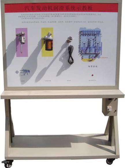 2.示教板面板采用耐创击、耐污染、防火、防潮的高级铝塑板,表面经特殊工艺喷涂底漆处理;面板打印有永不褪色的彩色电路图与工作原理示意图;学员可直观对照发动机润滑系统结构原理图和实物,认识和分析发动机润滑系统的工作原理。