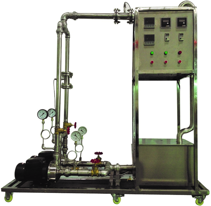 单相矢量变频器,规格:(0-50)Hz。 指针式压力表:表盘直径Φ100mm 测量范围0-0.6MPa,精度1.5级。 指针式真空表:表盘直径Φ100mm 测量范围-0.1-0MPa,精度1.5级。 功率变送器、智能功率数字显示仪。 光电传感器:数显,测量范围0~2999rpm,精度1rpm,转速检测机构。 宇电AI702M温度数字显示仪。 宇电AI702M流量数字显示仪。 DN40涡轮流量计:1~20m3/h,4-20mA远传输出,流量检测机构。 不锈钢离心泵:功率750W,最大流量7.2m3/h;2台。 水箱:304不锈钢材质,容积100L,带贮水排空底阀,管路循环回水与泵吸入口间隔板设计。 管路:304卫生级不锈钢材质,采用不锈钢快装活接与管路连接,总出口闸阀;管道法兰连接涡轮流量计。 电器:接触器、开关、漏电保护空气开关。 304不锈钢仪表柜:测控、电器设备在实验架上。 304不锈钢材质框架1800*600*1900mm(长×宽×高),带脚轮及禁锢脚。 |