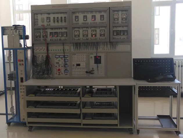 变频器电梯控制系统,变频器主机采用知名品牌(0.4KW以上),以交流380V供电。固定于实验台工作面板上,电源通过内部引线接到工作面板的插接孔上,可实现2~4层站交流单、双速电梯的驱动控制。