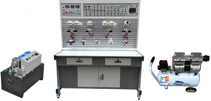 利用此套实训设备既可分别独立地进行气动控制、液压控制相应的基本回路及其应用实训,也可综合地进行相互配合的实训:如实现气-电控制,气-液控制,电-液控制,以及气-电-液综合控制等。
