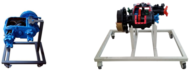 该设备采用翻新三代猛士CSK181装甲突击车(康明斯4.0L) 发动机润滑系统进行解剖处理,全面展示发动机润滑系统的内外结构(各部件齐全,剖面位置合理)。并辅以彩色发动机润滑系统结构原理图,可有效增强教学效果。