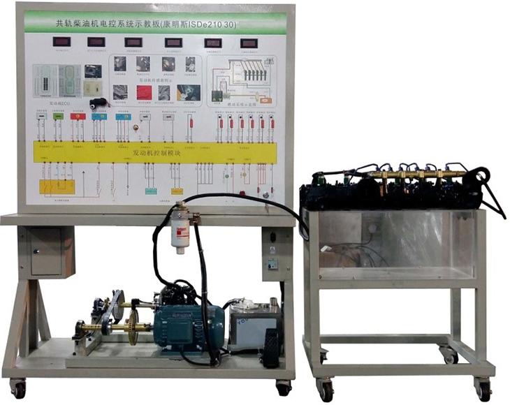 1.真实可运行的共轨柴油发动机燃油喷射系统,充分展示燃油喷射系统的组成结构和工作过程。电机驱动曲轴位置信号轮,可演示电子燃油喷射工作情况。