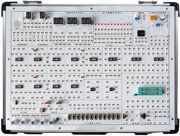 数字电路实验箱由铝木合金箱体、开关电源、常用信号源和实验电路区组成。其中实验电路区采用全开放模式,可根据需求灵活配置实验电路,以满足不同层次学生的教学实验要求。