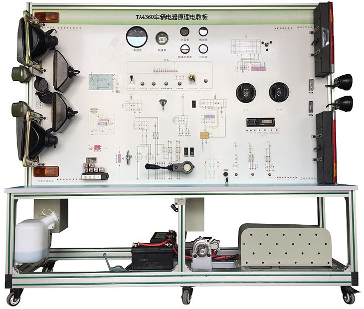 该设备采用泰安TA4360柴油机整车电器实物为基础,充分展示汽车仪表系统、灯光系统、雨刮系统、喇叭系统、发动机电器系统、起动系统和充电系统等汽车电器各系统的组成结构和工作过程。