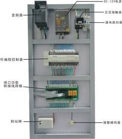 电梯的电气控制系统采用可编程控制器 (PLC) 实现逻辑智能控制,交流变频调速(VVVF) 驱动,其硬件构的组成及功能与实际电梯完全一样。具有自动平层、自动开门关门、顺向响应轿厢内外呼梯信号、直驶、电梯安全运行保护以及电梯急停、慢上、慢下、照明、风扇等功能。且具有性能可靠、运行平稳、操作简单、能耗低和便于教学等特点。
