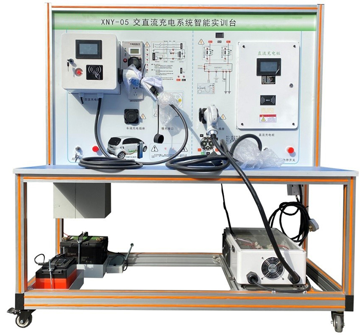 1、设备集成交流充电和直流充电设备装配与调试功能,可同时满足交流充电与直流充电桩装配、调试及检测练习和考核,可通过设备上触摸屏界面切换交流充电或直流充电。