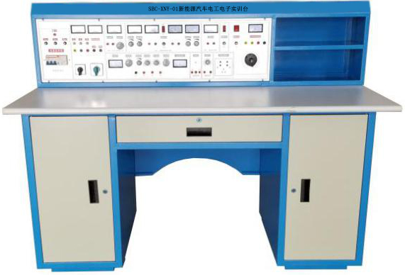 新能源汽车电工电子实训装置配备各种交直流电源、信号源、仪表、电工电子实训模块、交流电路实训模块等。各模块的接口均已引至板上的专用插座,学生可自主搭接各种电工电子实训线路,