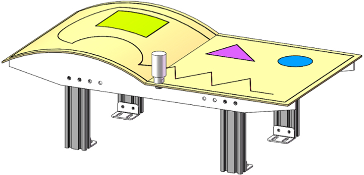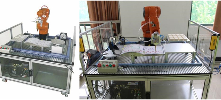 模块整体台架材料为优质铝型材,一体画板由不锈钢板制成,表面覆盖PVC膜;具有TCP标定工具,可实现机器人工具TCP标定练习;实现基本轨迹编程练习,提供三角形、矩形、圆形及多线段图形,训练不同的编程指令,实现在平面及空间复杂教学轨迹。