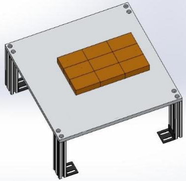 本单元由铝板和铝型材组合制成,尺寸为300*200*150mm;码垛料块为尼龙材质外形尺寸为80*40*20,可根据实验要求码垛多种形式。
