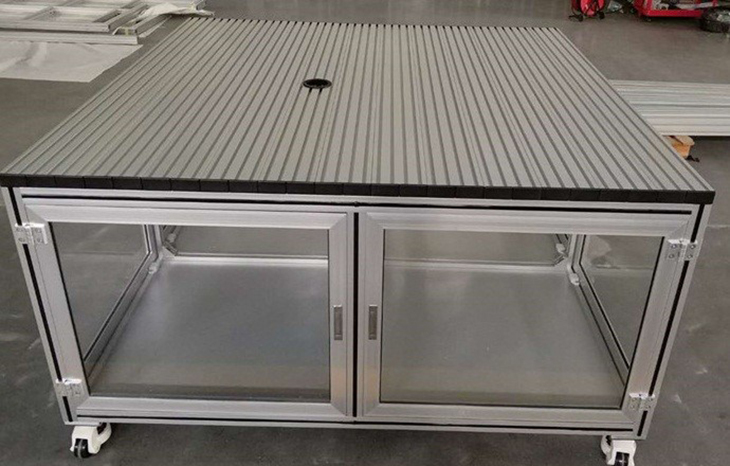 a)框架为高强度铝型材结构,台架四周采用优质钢板封闭,表面喷涂处理。