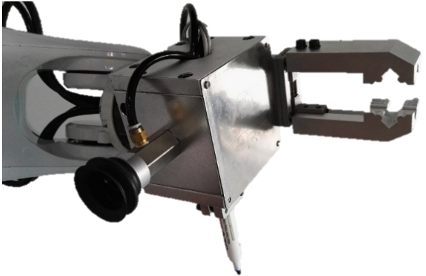 使用多功能实训夹具的优点是只需要通过变换机器人手爪姿态即可实现对模拟应用环境的模拟操作与编程,外形尺寸:120*120*180mm,重量2KG;具备吸紧工件实现码垛功能;实现夹持物料模拟上下料的功能,同时具有轨迹画笔。