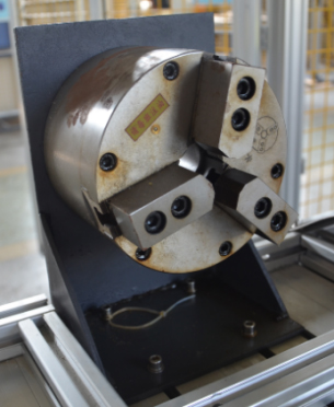 该工作站模拟实际工厂中的机床上下料,由气动三爪卡盘、固定支架、气动手爪和物料架组成,让学生更精准的掌握轨迹练习,了解机床上下料工艺流程。