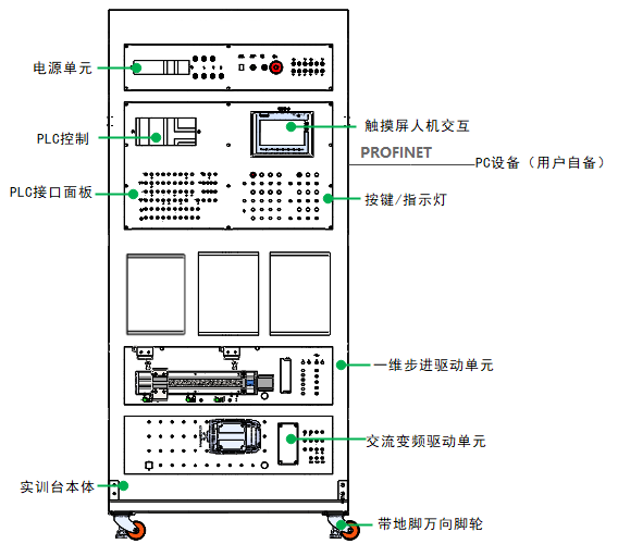 学生既可通过系统配备的功能模块开展PLC控制实验,也可通过触摸屏组态丰富有趣的虚拟被控对象,从最基本的控制指令到可实现多个控制系统的模拟及实物控制。完全开放的结构,赋予学生动手操作的空间,自由搭建、功能扩展,高度灵活性、易维护、可持续升级,特别适合开展需求多样的课程设计项目、机电创新项目、智能制造基础项目,是符合"新工科"建设理念的教学实验系统。