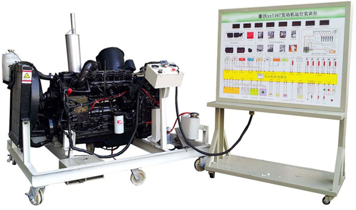 豪沃zz1167发动机运行实训系统以翻新 豪沃zz1167汽车国三原厂柴油发动机总成。及运行附件为主体部件,发动机可起动运行,进行起动、加速、减速、故障检测与诊断、故障模拟与排除等工况的实际操作,真实展示柴油发动机结构与原理及工作过程。