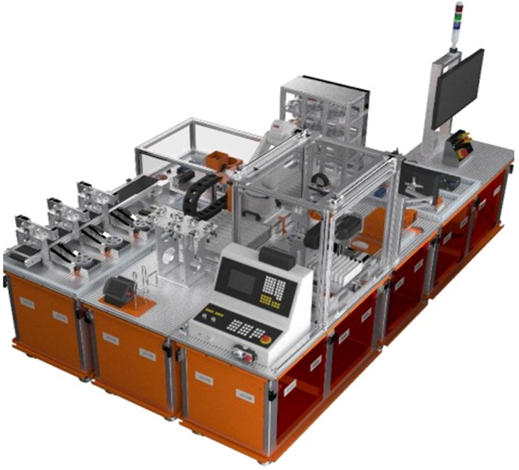 智能制造技术应用一体化学习工作站由执行单元、工具单元、仓储单元、加工单元、打磨单元、检测单元、分拣单元、总控单元及软件组成。