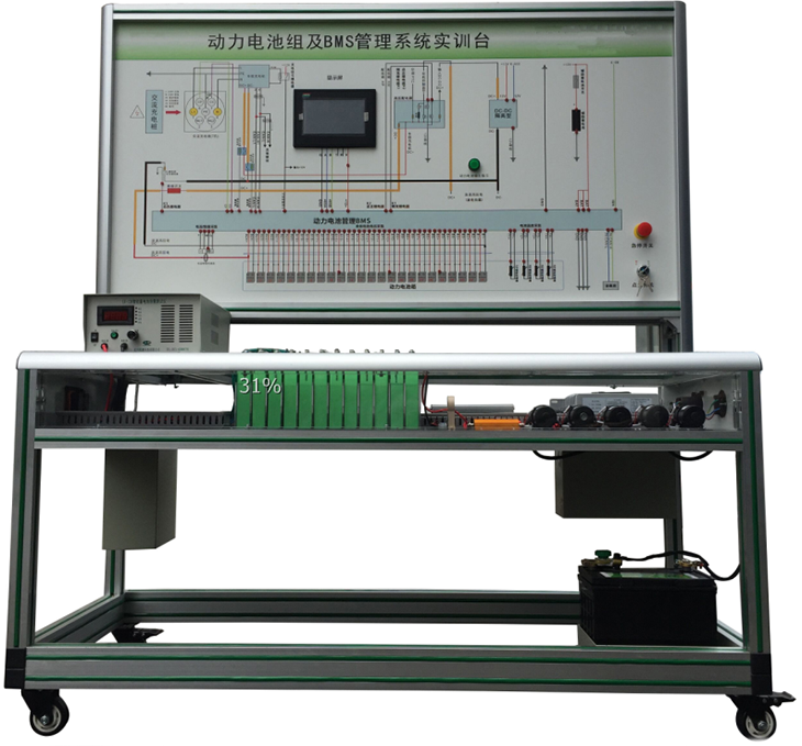选用新能源车辆磷酸铁锂 动力电池包,单体电池(3.2V20AH,共24串),带CAN总线的一体机BMS电池管理系统,有被动均衡功能;真实地呈现了磷酸铁锂动力电池包核心零部件之间的连接控制关系、安装位置和运行参数,以及高压系统安全注意事项,并培养学员对磷酸铁锂动力电池包(BMS)故障分析和处理能力。适用于了解与验证电动汽车的动力电池参数进行实时监控、故障诊断、SOC估算、短路保护、绝缘检测、充放电控制、均衡等功能,并通过CAN总线的方式与带CAN通讯的车载充电机进行信息交互,保障电动汽车高效、可靠、安全运行的BMS教学实训实验。