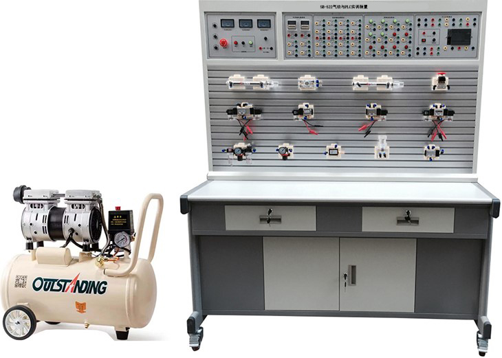 气动与PLC实训装置、PLC控制气动训练器单板采用单面型结构,气动技术配有PLC作为控制主控系统。各种气动元件可灵活安装T型槽板上,带有快速接头的连接管在各液压元件气动之间连接。装置既可以分别独立进行气动控制的相应基本回路及其应用实训,以及PLC编程及应用控制实训,适用于"液压与气压传动"、"气动技术"等相关课程的实训教学。