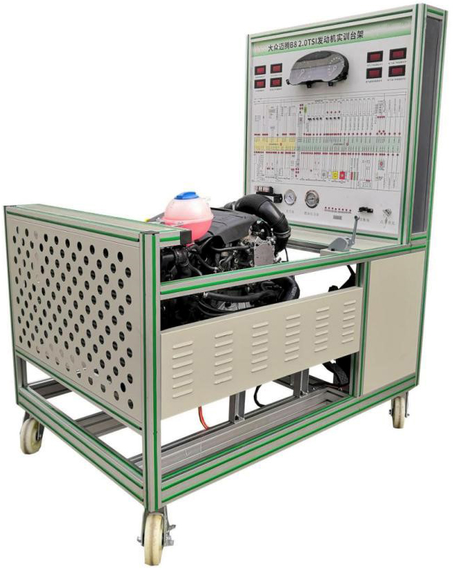 该设备采用翻新新一代迈腾B8 2.0T 电控汽油发动机总成及运行附件的固定台架和运行检测控制面板台架两部分组成。