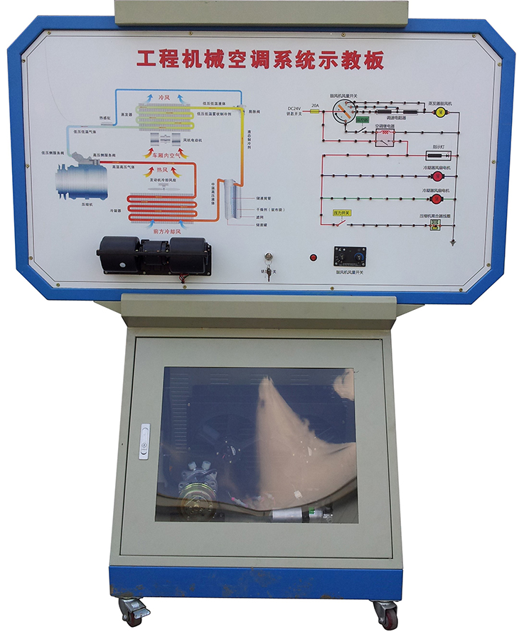 该设备采用全新农机空调系统为基础,充分展示空调系统的组成结构和工作过程。