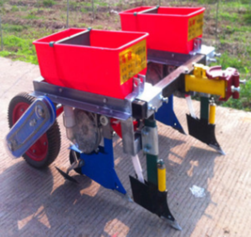 播种机与手扶拖拉机牵引座连为一体,随手把能灵活升降,具有结构简单,造价低廉,操作方便等优点,是配套手扶拖拉机的一种小型播种机。