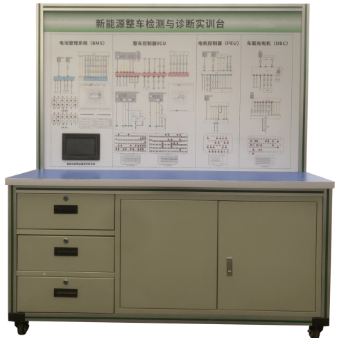 4.实训台面板上绘有彩色UV平板喷绘电路图,学员可直观对照电路图和发动机实物,认识和分析控制系统的工作原理;