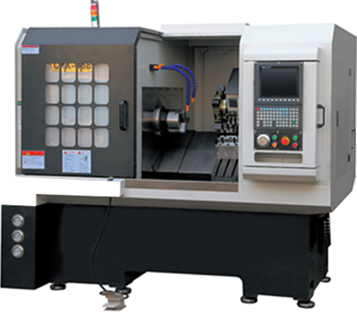 数控车铣复合机床床身采用整体铸造成型,圆筒式筋板结构,床身导轨面与水平倾斜30度布局,具有较大的承载截面,刚性强,吸震性好,不易变形,可保证高精度切削加工。