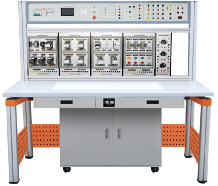 挂箱上已安装有熔断器、钮子开关、交流接触器、时间继电器、直流接触器、按钮开关、信号指示灯、热继电器等,所有器件均采用国内外知名品牌。各种实训元器件的接线都在接线端子排上进行接线,避免了因长期在器件本身进行螺丝拆装而导致元器件的损耗,通过走线槽走线,进行工艺布线训练。实训电路与装置电源的连接通过安全插座和高可靠护套结构手枪插连接线,安全快捷。