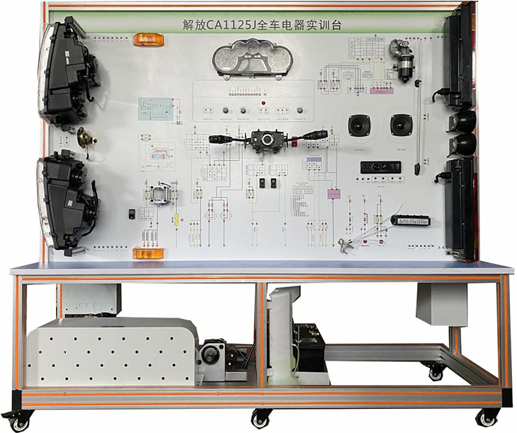 1、该设备采用全新解放CA1125J整车电器实物为基础,充分展示汽车仪表系统、灯光系统、雨刮系统、喇叭系统、发动机电控系统、起动系统和充电系统等汽车电器各系统的组成结构和工作过程。