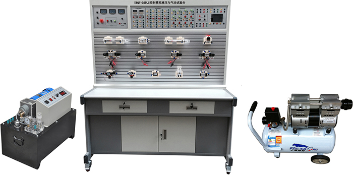 PLC控制模拟液压与气动试验台是我公司根据高校机电一体化对气、电、液控制的教学大纲要求,我公司液压PLC控制与气动PLC控制实训设备的优点,采用了开放型综合实训台结构,广泛征求专家教授与老师的意见,经不断创新改进研制而成的。是目前集气动控制技术、液压传动控制技术以PLC控制的理想的综合性实训设备。实训可以让学生直观、感性地对比、了解气、电、液各自具有的特点、特色、及优缺点等。