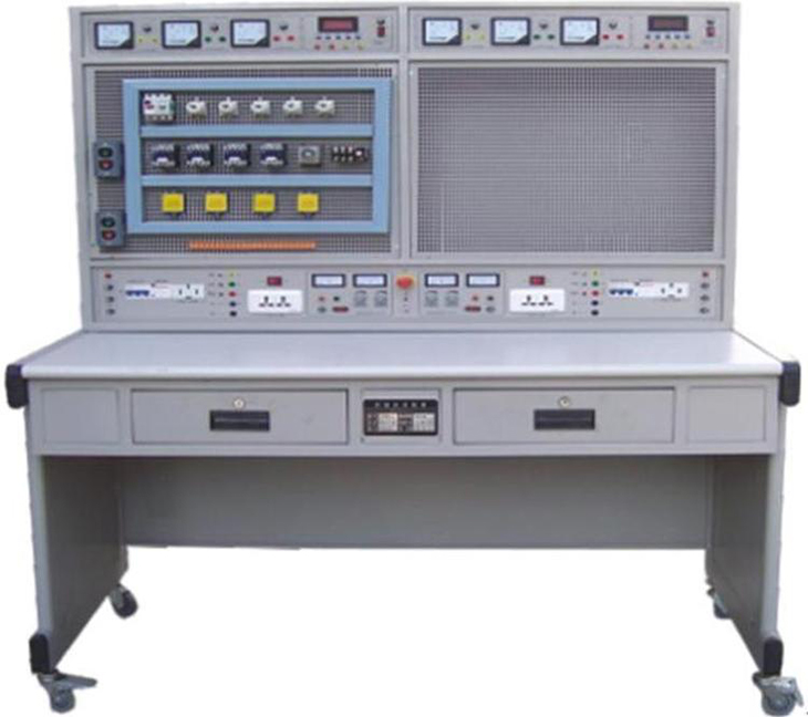 维修电工技能实训考核装置主要由实训桌、元件储存柜、网孔板组成。操作者根据实训线路进行元器件的布局、安装、走线,接近工业现场,有利于培养学生的动手能力和操作技能。实训项目可自行确定,根据所选项目选择相应的元器件。其是大中专院校、职业学校、技术及培训机构学生实训和电工考证的理想考核设备。