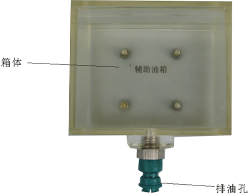 2、辅助油箱采用了封闭箱体结构,外壳材料采用进口透明有机玻璃,在辅助油箱的上端配有螺旋盖油孔,螺旋盖上设有排气孔。下端有透明有机材料制造的排油阀。
