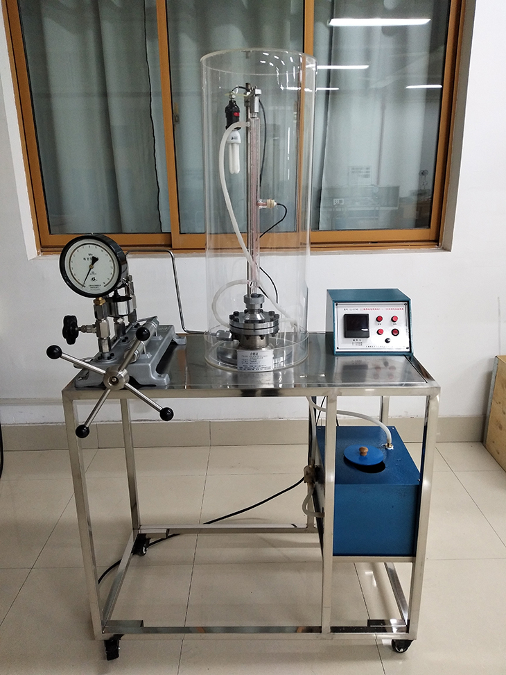 3、高压容器,用45号钢加工焊接而成,表面采用镀铬处理;高压玻璃管,厚度3mm,耐压11MPa。