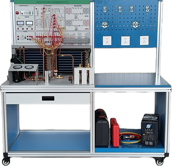 空调制冷系统技能实训平台、空调制冷系统技能实训装置是专门为职业院校制冷类相关专业而研制的实训装置,根据制冷类行业制冷维修技术的特点,针对空调的电气控制以及制冷系统的安装与维修进行设计,强化了学生对空调冰箱系统管路的安装、电气接线、工况调试、故障诊断与维修等综合职业能力。装置融合了流体力学、热力学、传热学和电气控制等技术,集制冷空调系统安装、制冷系统电气接线、压力检漏、抽真空、充注制冷剂与运行调试于一体,包含了制冷系统维修的全部步骤,能满足实训教学、实际工程训练及职业技能竞赛的需要。