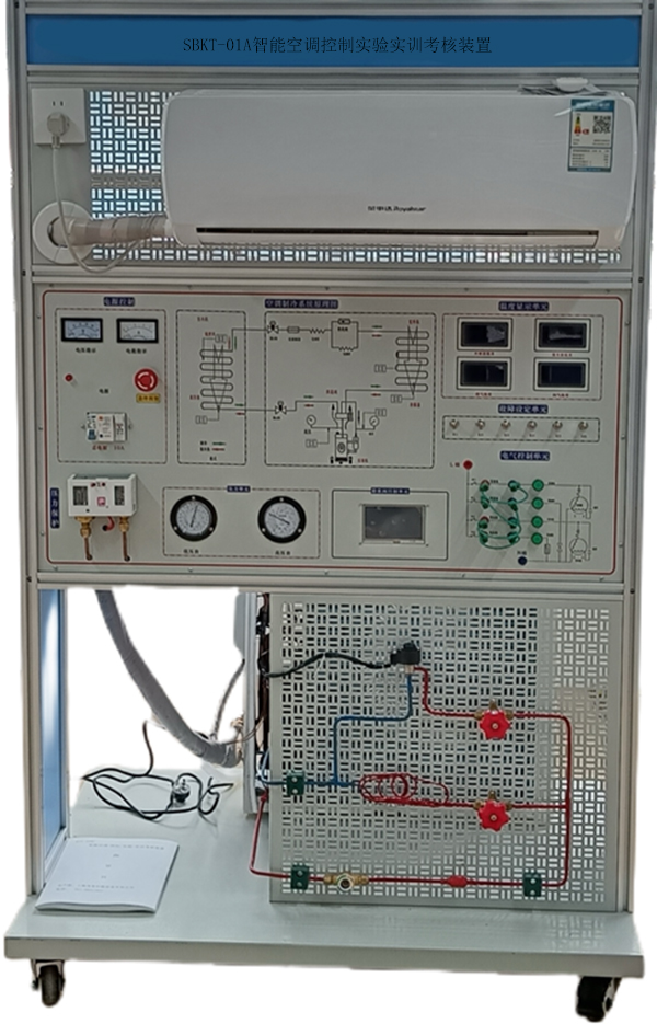 智能空调控制实验实训考核装置、智能空调控制实训考核平台是为大中专院校的制冷空调专业、各技能培训及全国职业技能鉴定部门开发设计的,适用于“制冷原理及应用”、“制冷空调技术”、“制冷空调设备维修与操作”等教学实训要求。智能空调控制实验实训设备集制冷系统、电气控制系统、故障模拟系统为一体,布局合理、造型美观大方。